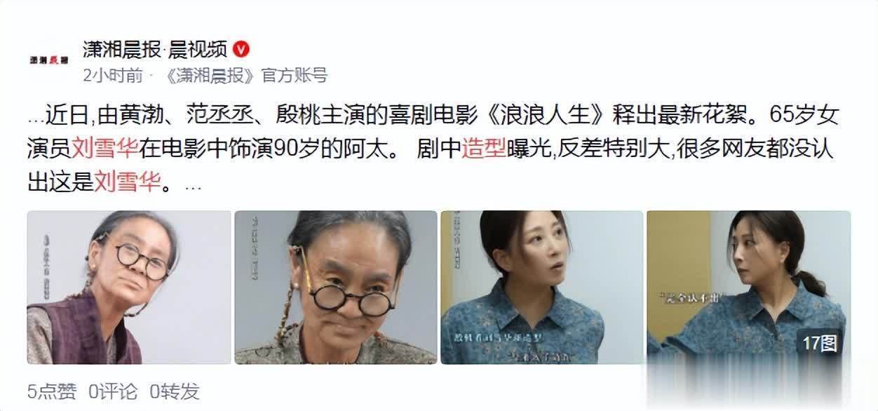 正接受采访的同剧组演员殷桃惊讶到张大嘴巴,低声问身边人:“这真是刘雪华老师吗?”